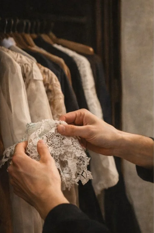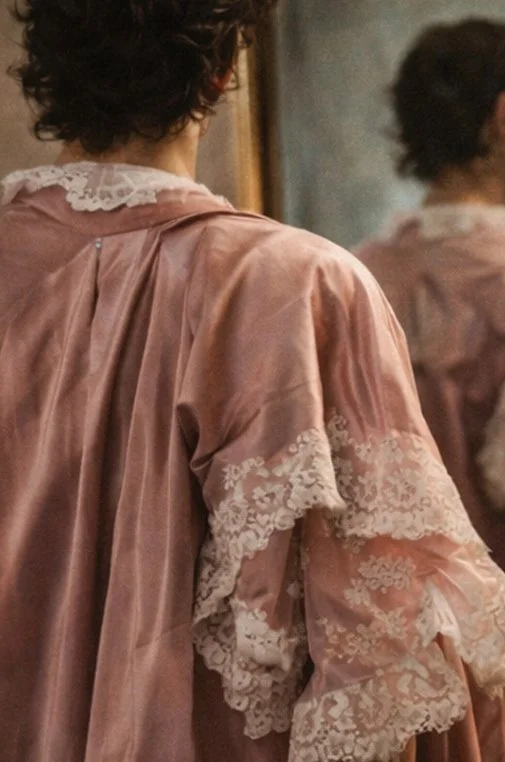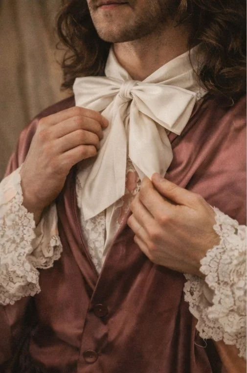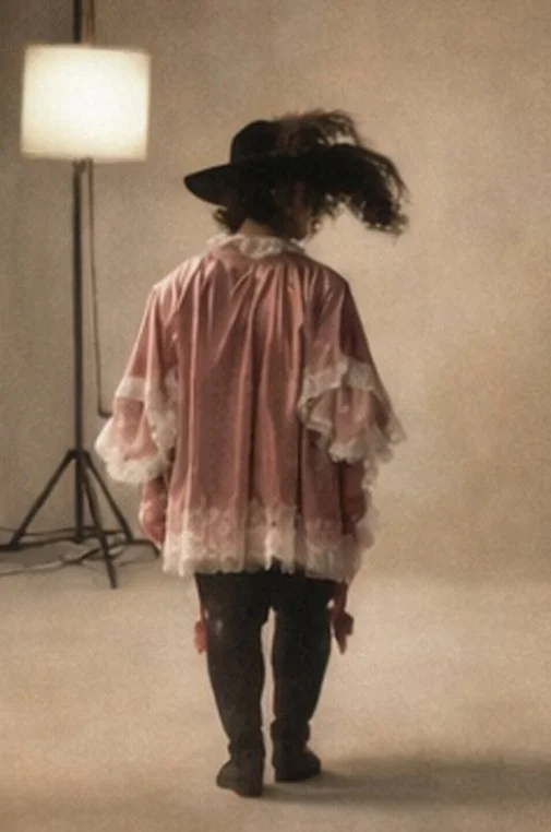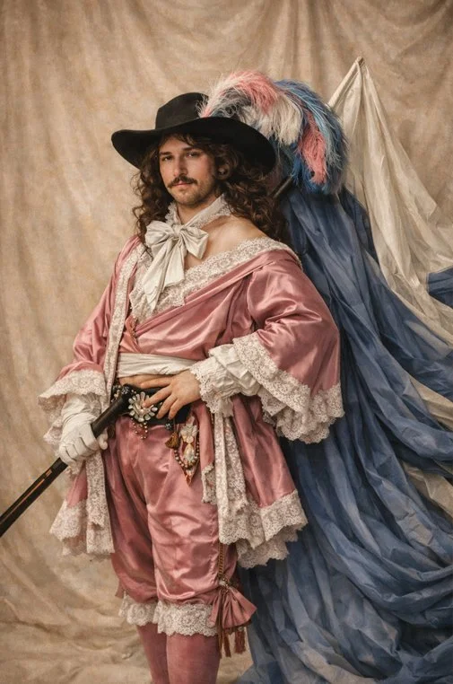 My video reimagines Andreas Silty as a Standard-Bearer through the concept of wardrobe as identity. In a slow, atmospheric sequence, blending moving image and still photography the camera records a quiet ritual of preparation, lingering on hands brushing silk, lifting lace into light, fastening gloves, and layering tailored garments. Soft shadows, close detail shots, and subtle movement transform dressing into a ritual of self-fashioning, where each choice becomes a gesture of power, vulnerability, masculinity, and femininity. The subject remains intentionally ambiguous. In the final moments, the figure steps onto a studio photo set, illuminated by dramatic lighting, where I capture a single contemporary portrait that echoes the historic pose and reinterprets the painting’s context through a modern narrative. The final frame of the film is the reimagined photography portrait highlighting both masculinity and femininity.